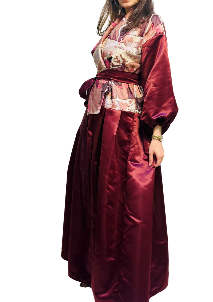 فستان سهرة من قماش التفتة بقطعة مشغولة بالخيوط من الصدر .
